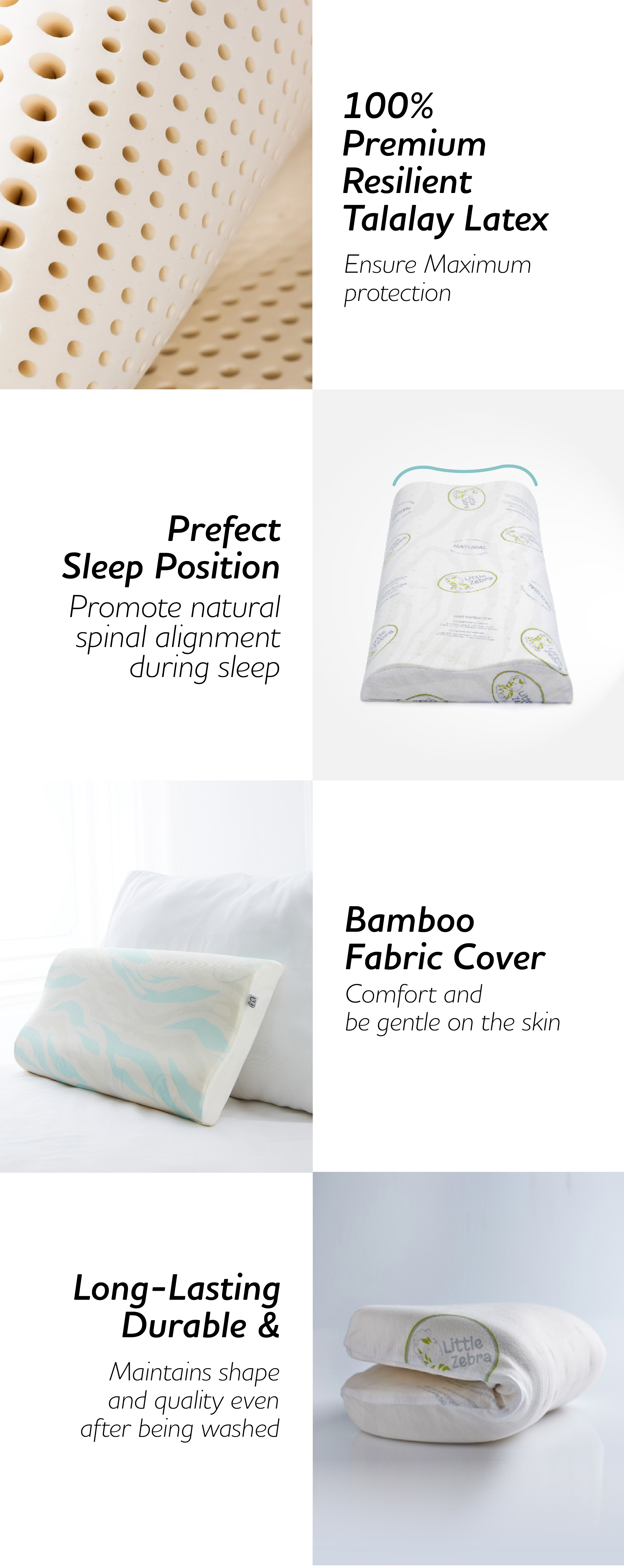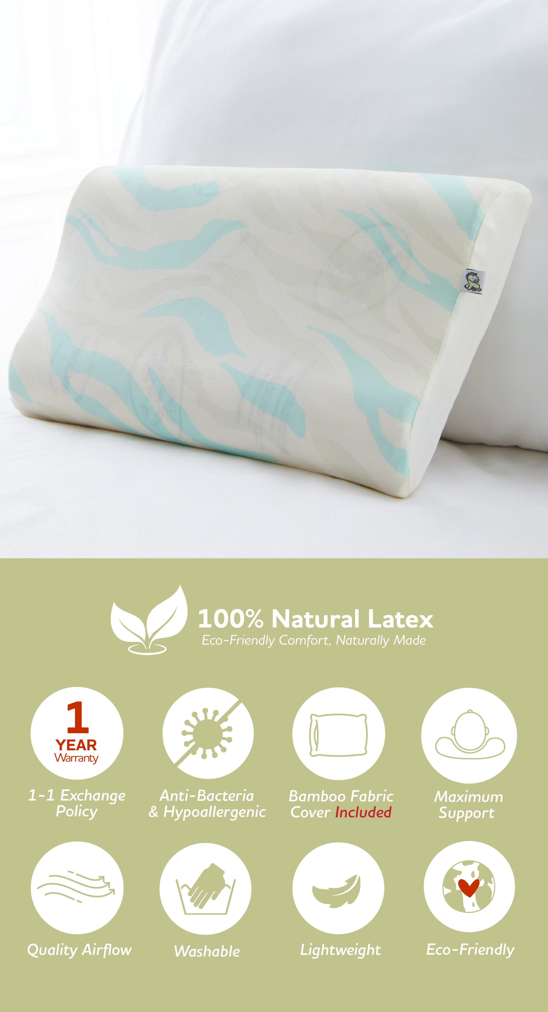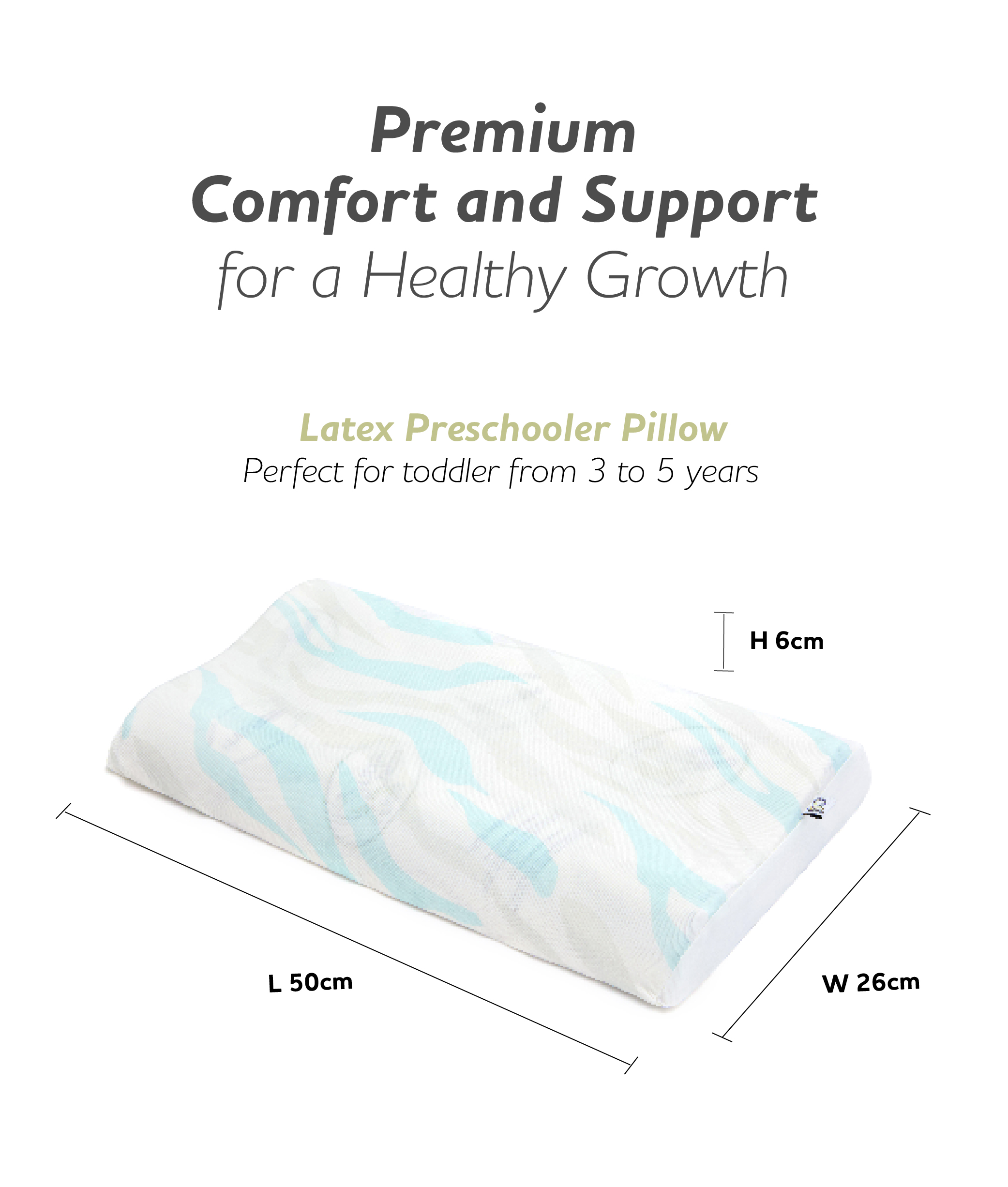 1-year 1-to-1 exchange warranty* Support your preschooler’s sleep with our 100% Natural Latex Pillow. Designed for ages 3-5 years, this pillow provides gentle cushioning and is contoured to promote natural spinal alignment, ensuring comfort and healthy growth during restful sleep.