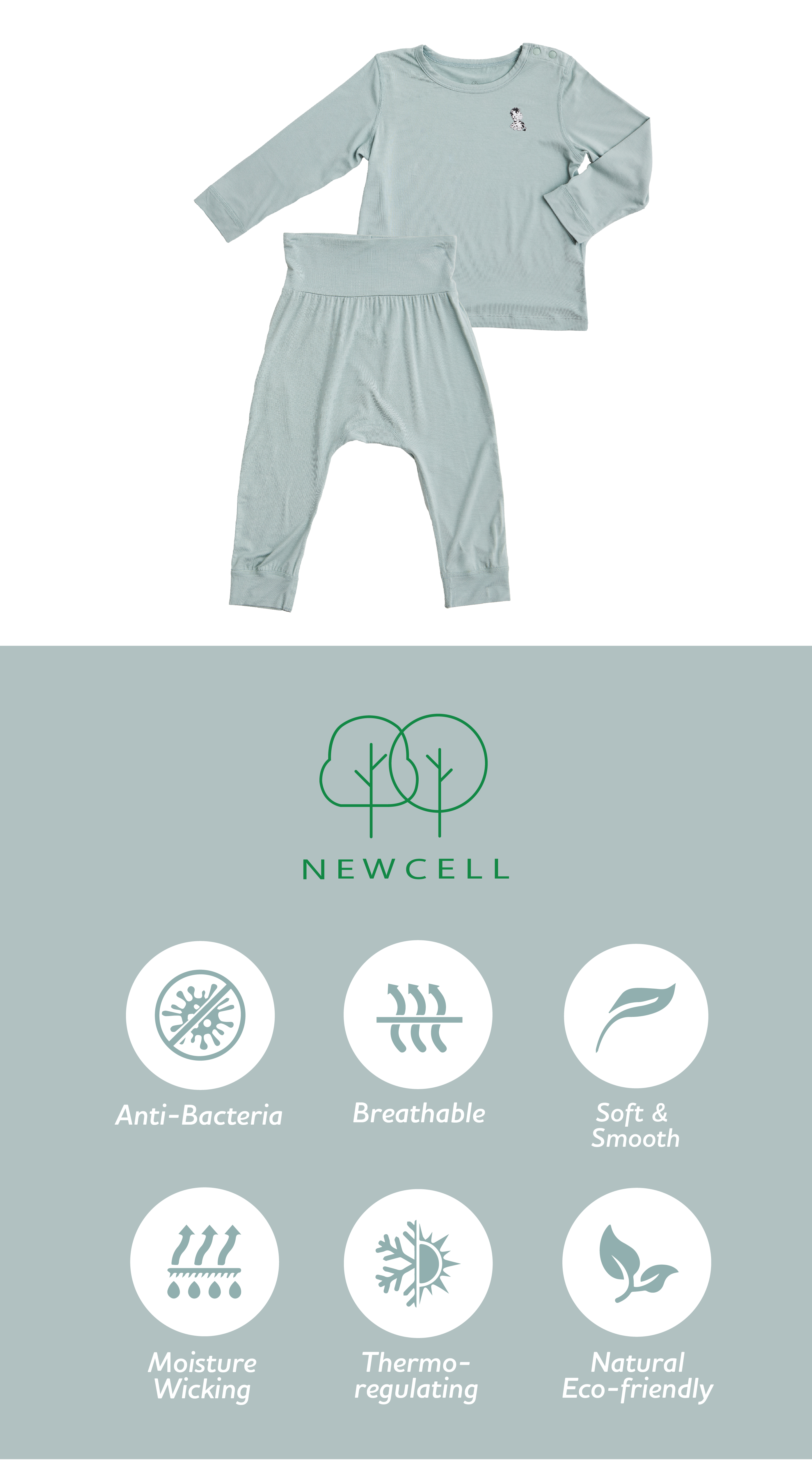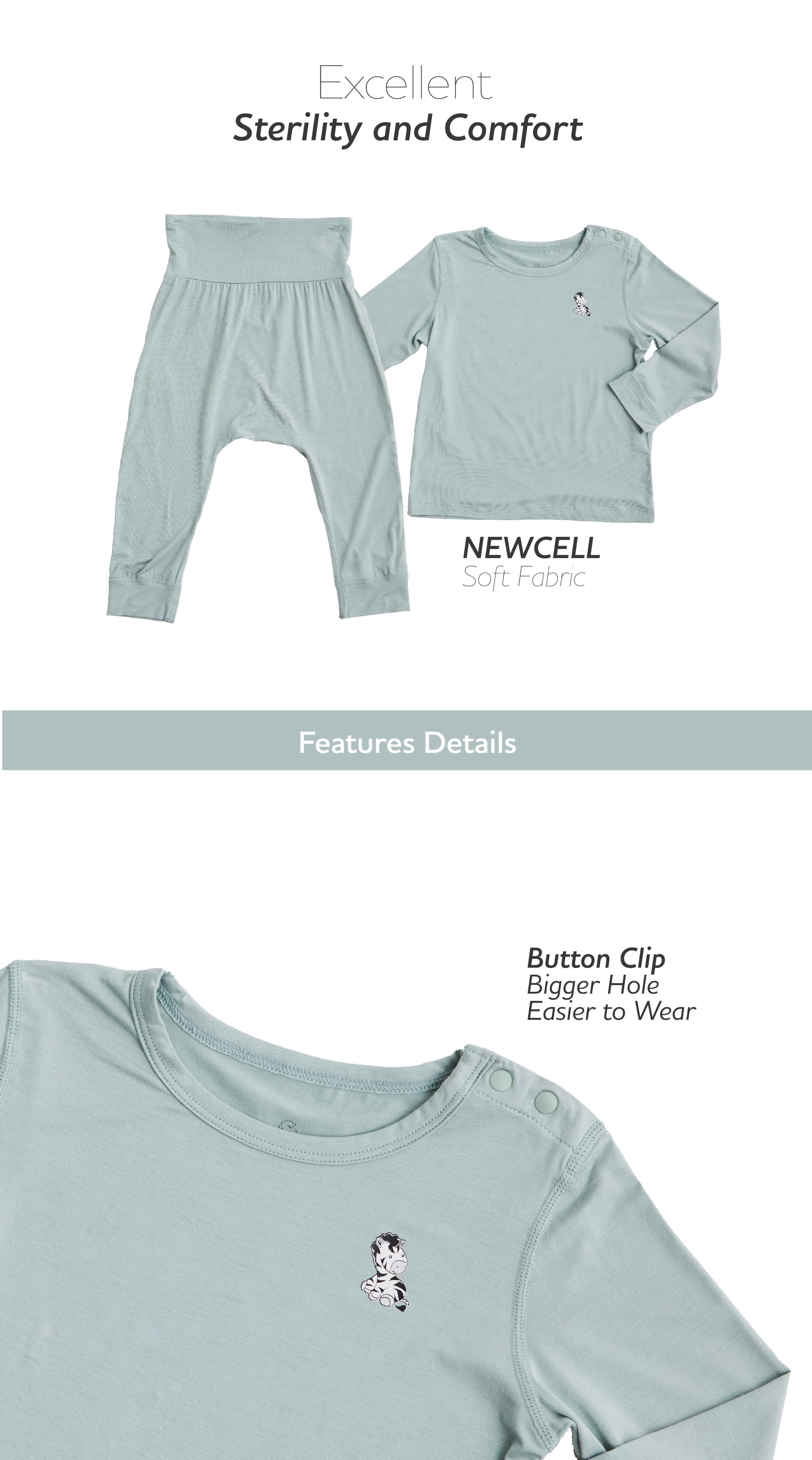 Little Zebra’s NEWCELL Pajamas Set, created from NEWCELL, exemplifies what it means to combine comfort, quality, and hygienic. This advanced technical material ensures excellent sterility and comfort.