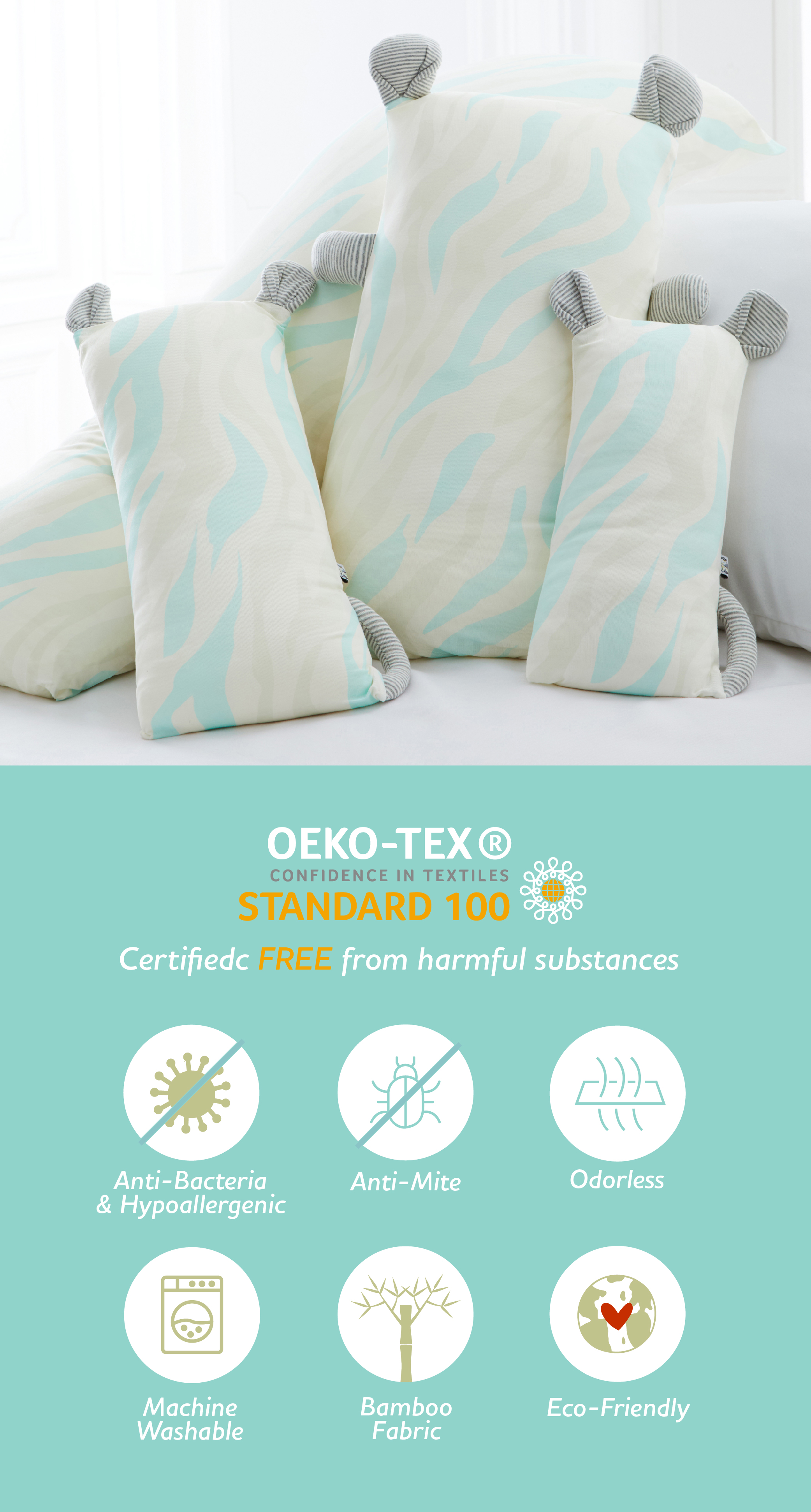 Premium bamboo spandex fabric pillowcase with zebra & fox prints. Machine washable. Soft, cooling and breathable.