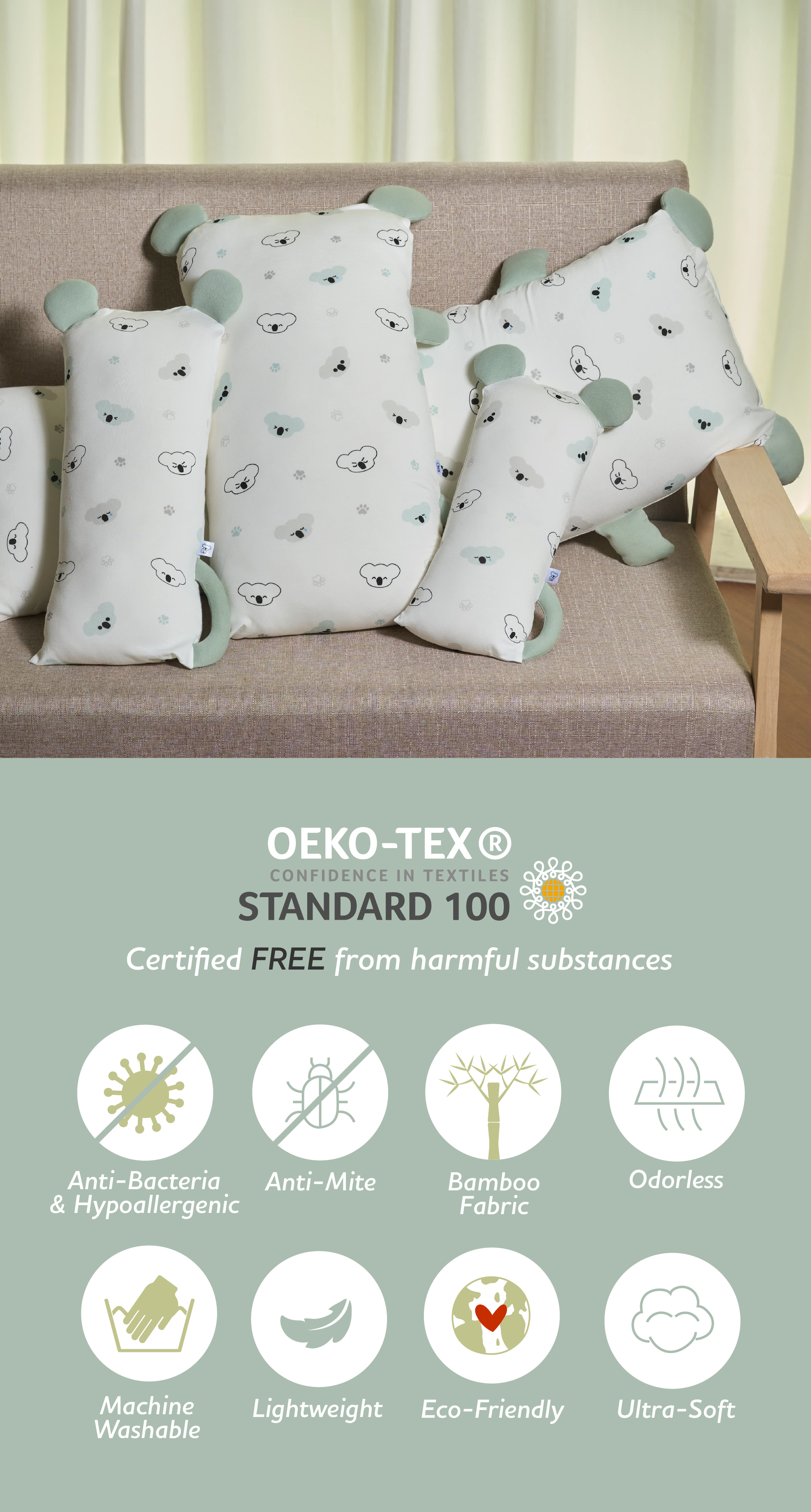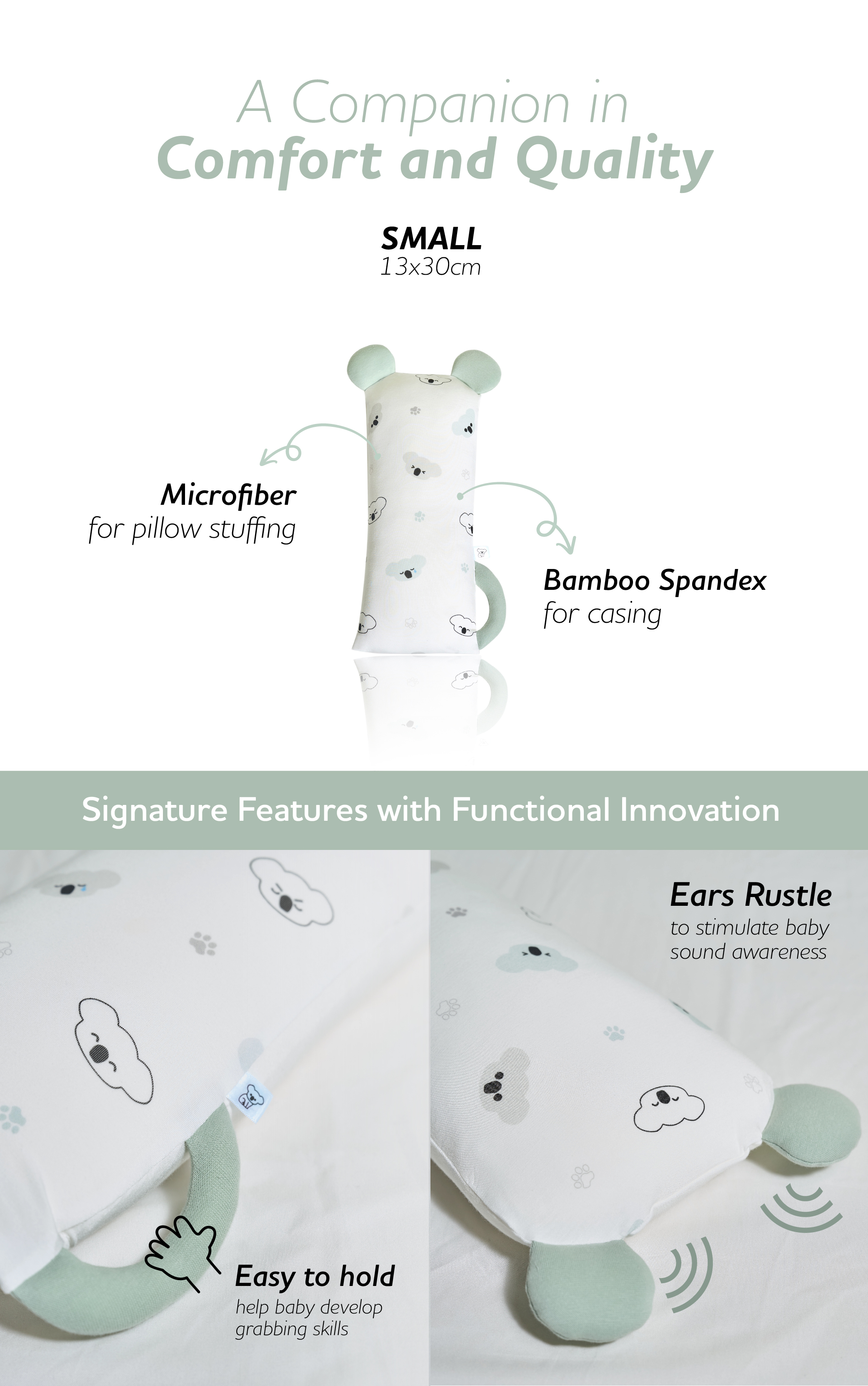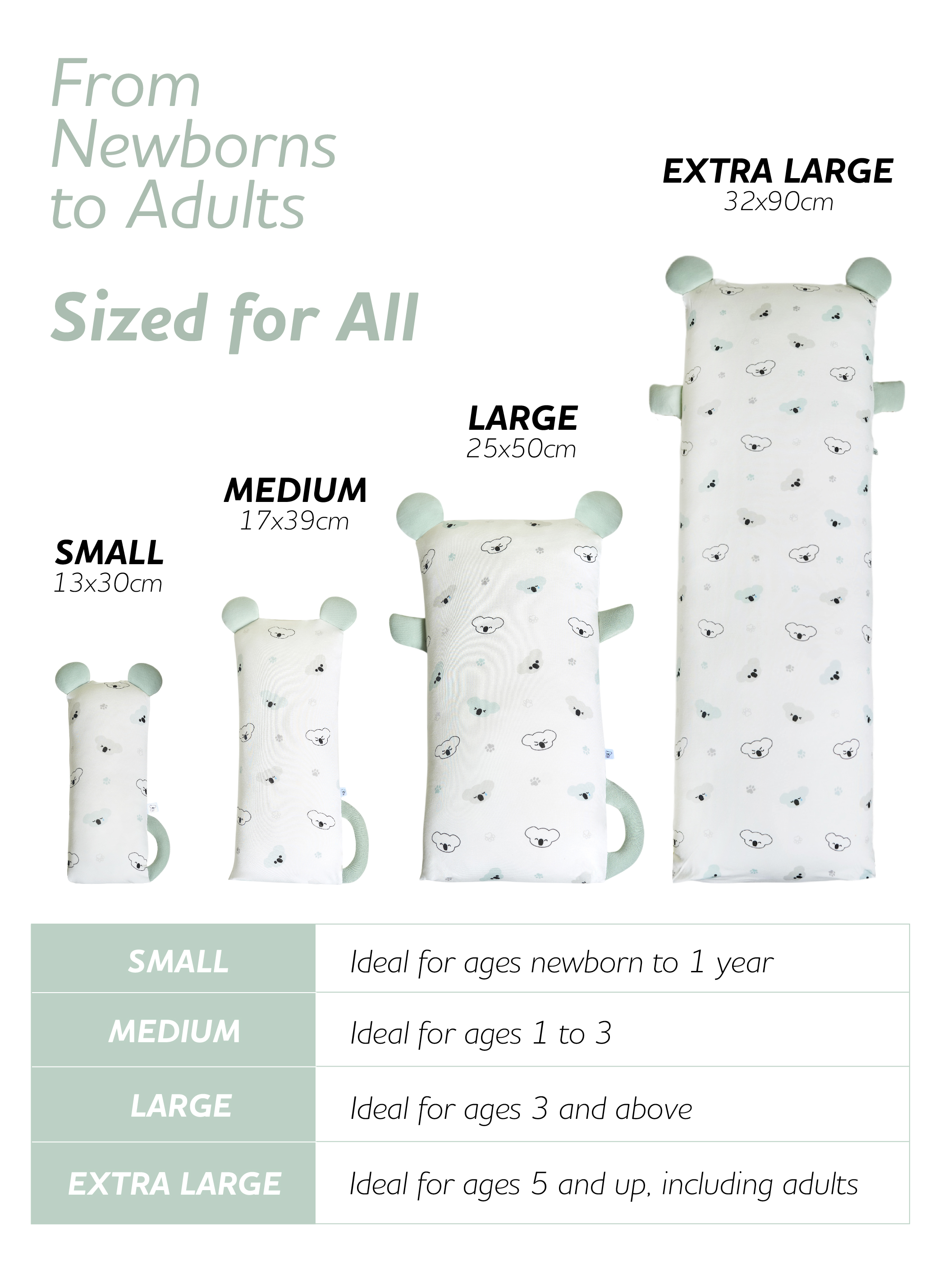 NEW HugHug Pillow (Small) Koala Calm Sage (13x30cm)