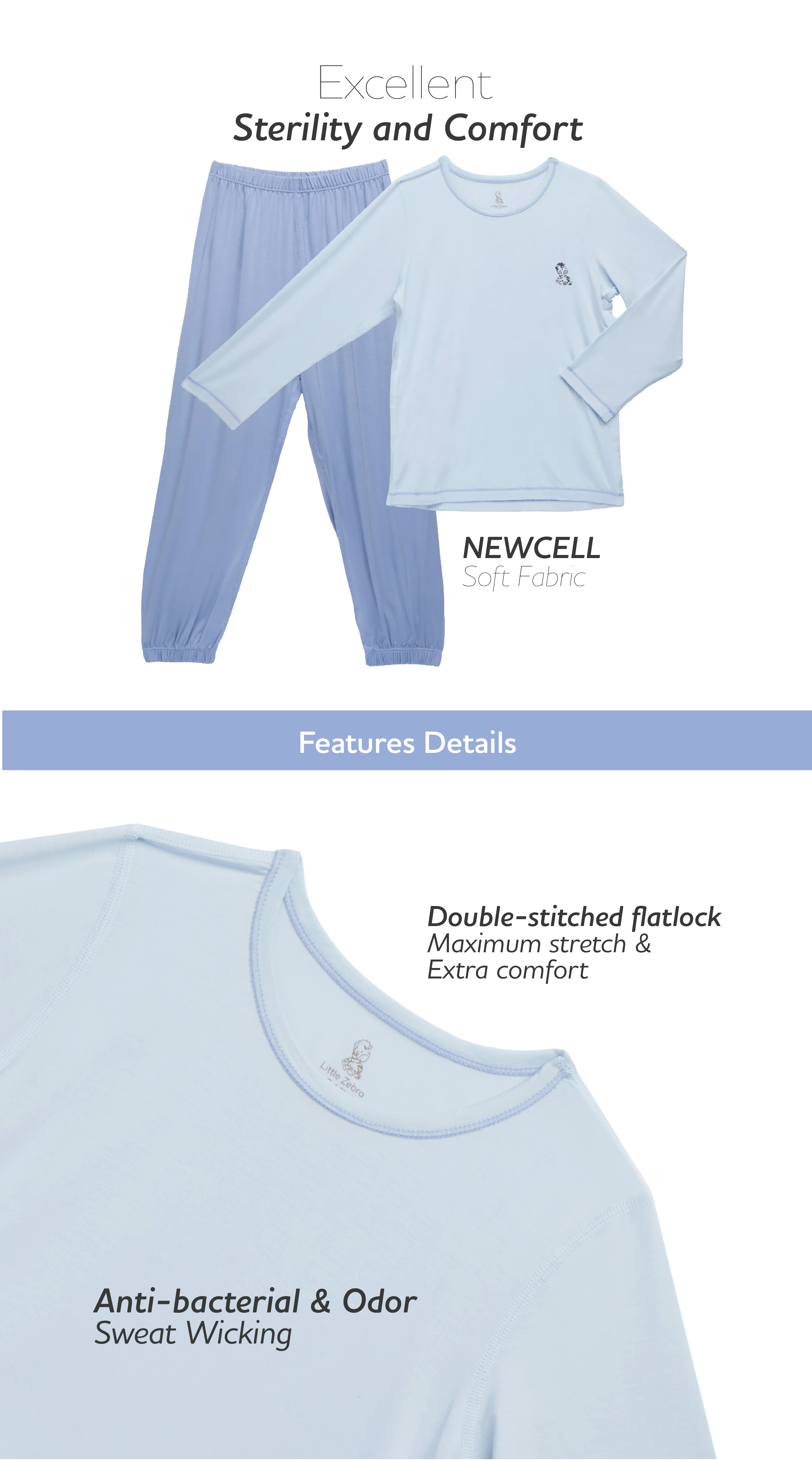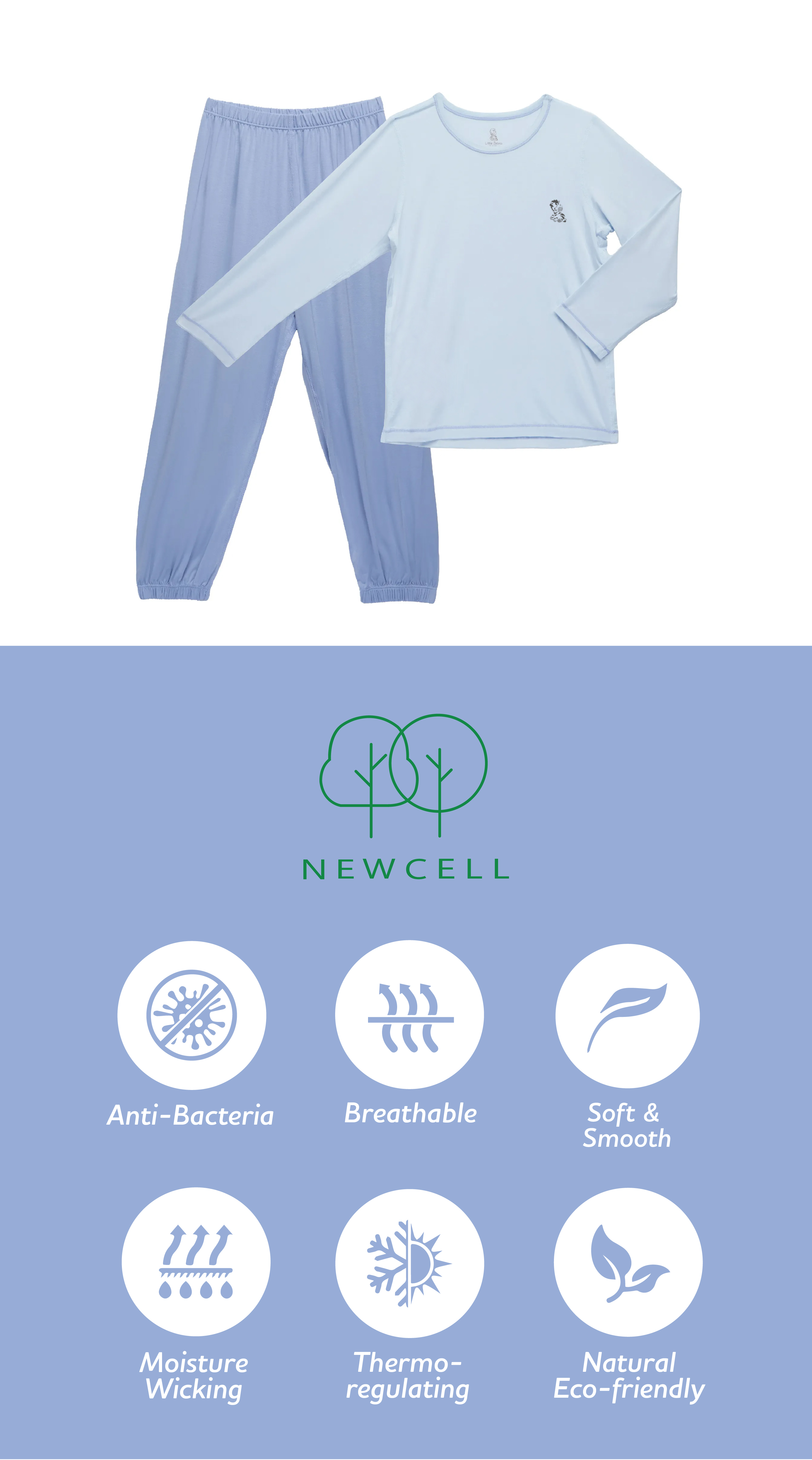 Little Zebra’s NEWCELL Sleep Wear Set, created from NEWCELL, exemplifies what it means to combine comfort, quality, and hygienic. This advanced technical material ensures excellent sterility and comfort.